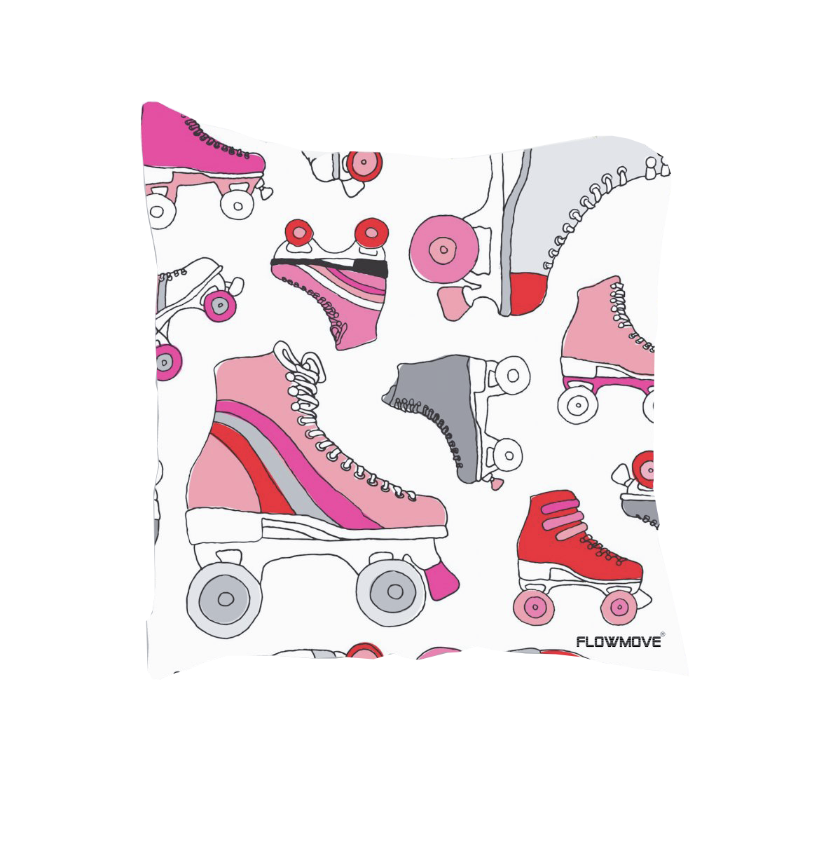 Almofada com estampa de patins coloridos em fundo branco