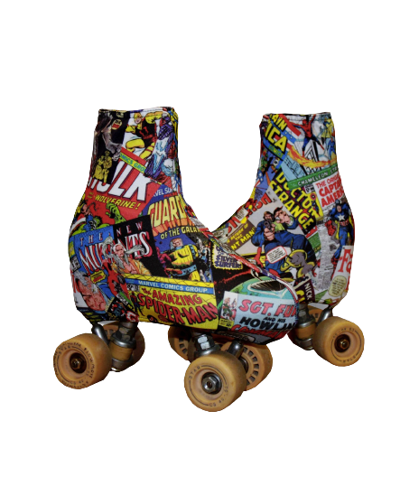 Patins clássicos com estampa colorida Marvel em fundo branco