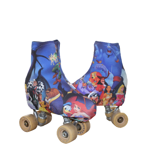 Patins de quatro rodas com capa colorida de personagens da Disney