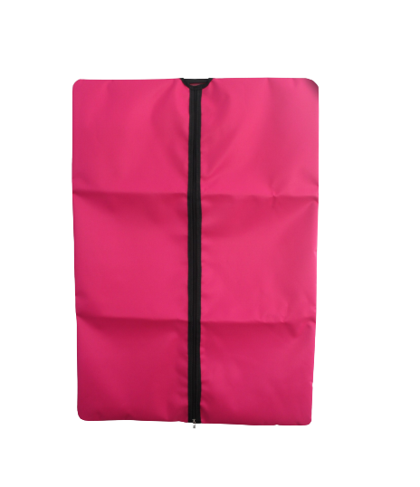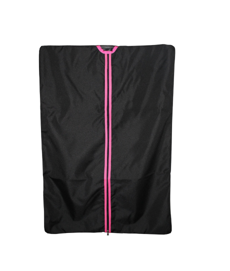 Capa preta para roupa com fecho rosa no centro