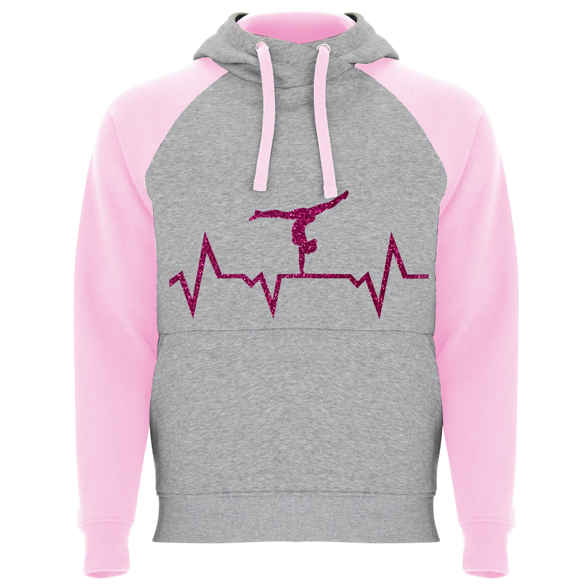 Sweatshirt cinzento e rosa com desenho de batimento cardíaco e ginasta