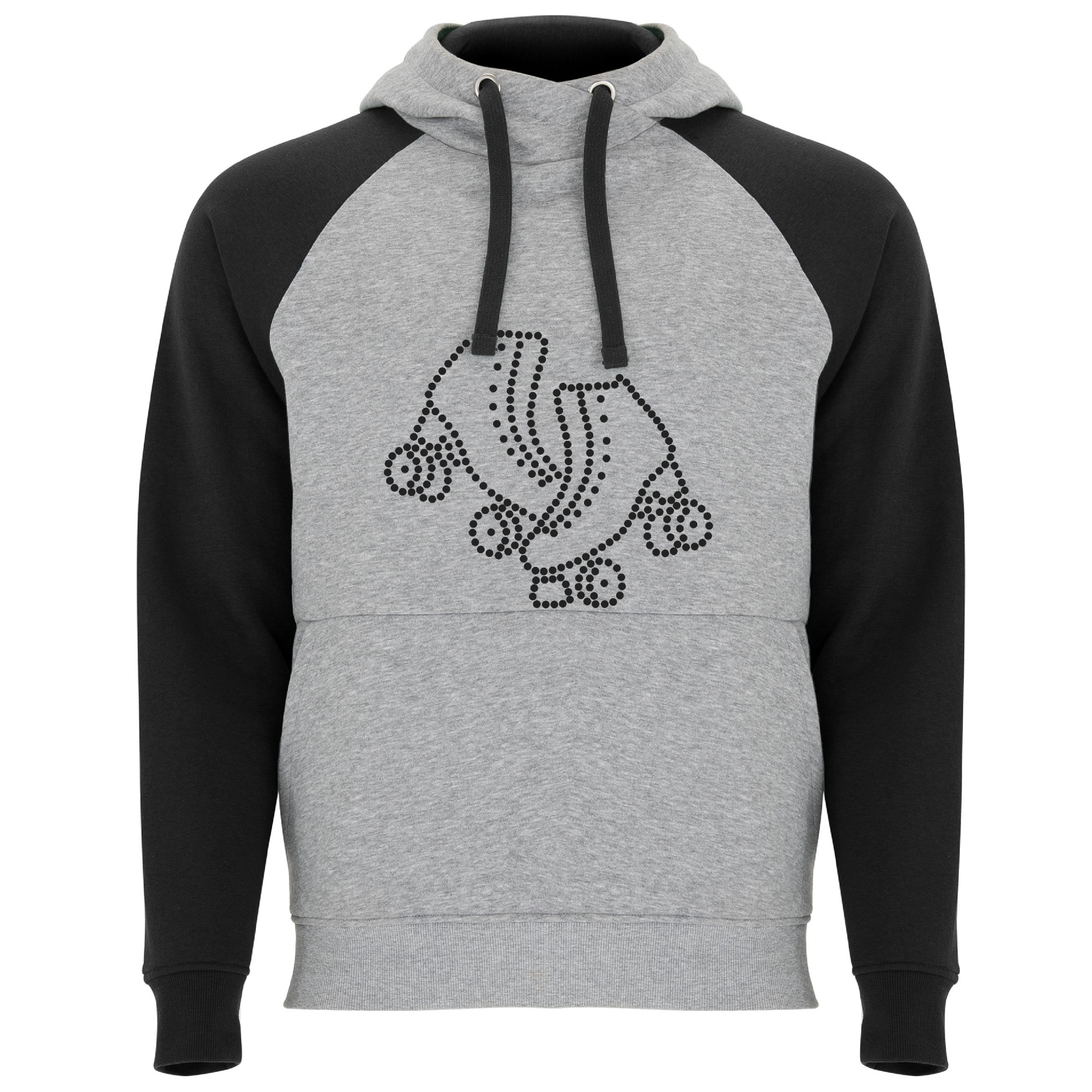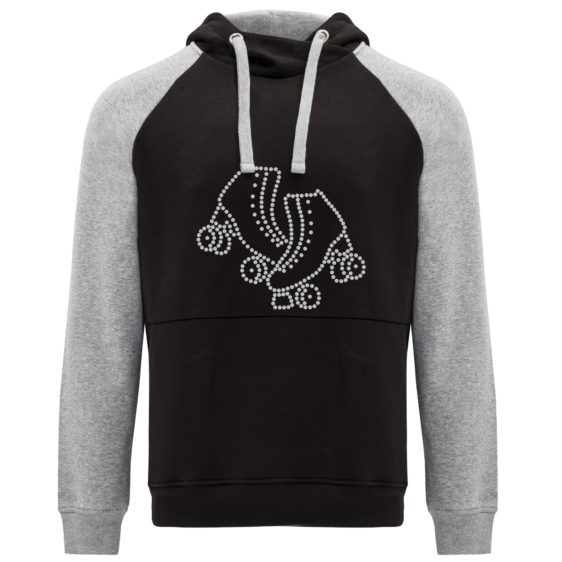 Sweatshirt preta com capuz e desenho de patins de rodas em pontos brancos