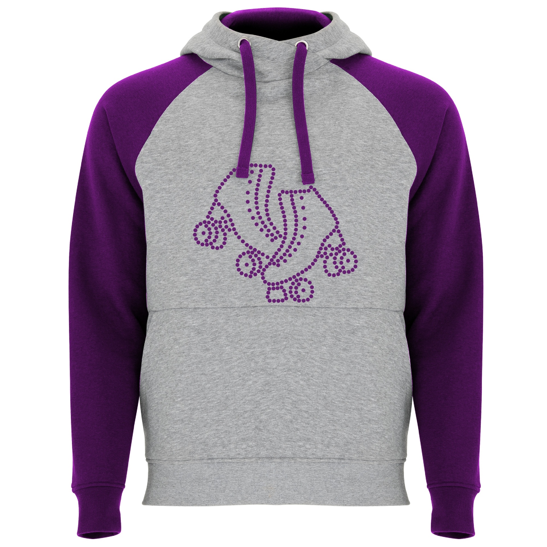 Sweatshirt capuz cinza claro e roxo com estampa de patins roxos