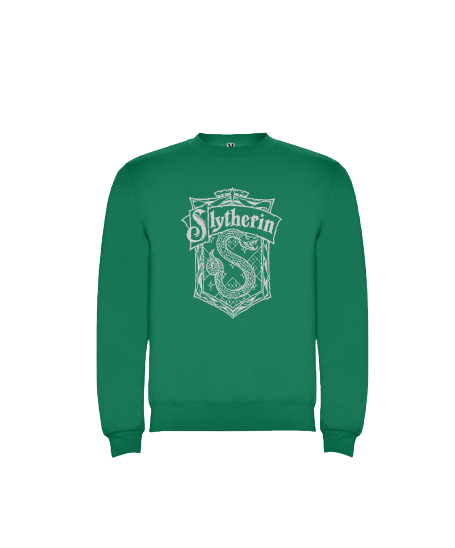 Sweatshirt verde Slytherin com estampa branca de serpente em escudo