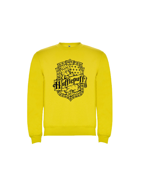 Sweatshirt amarela da Hufflepuff com brasão preto